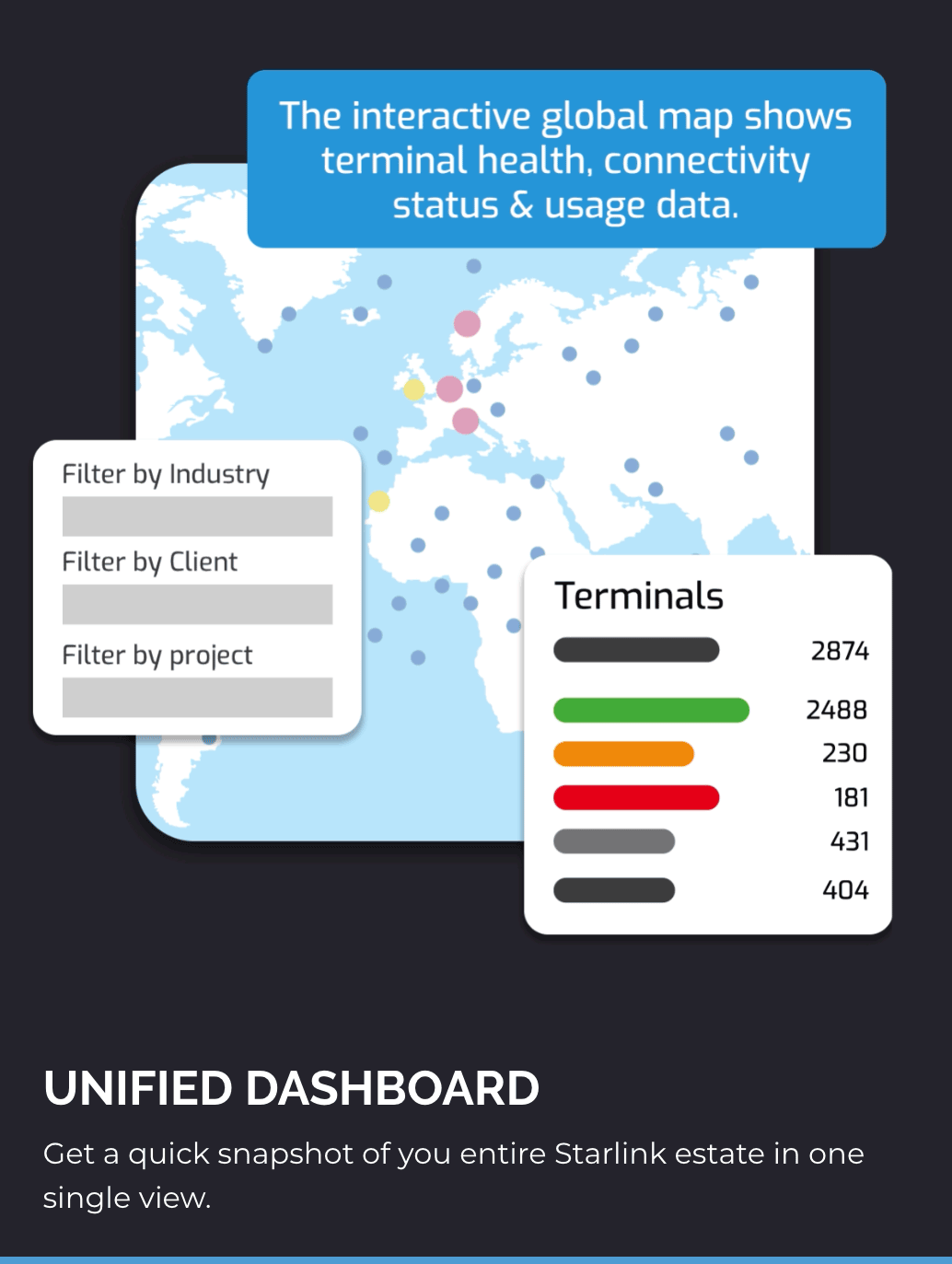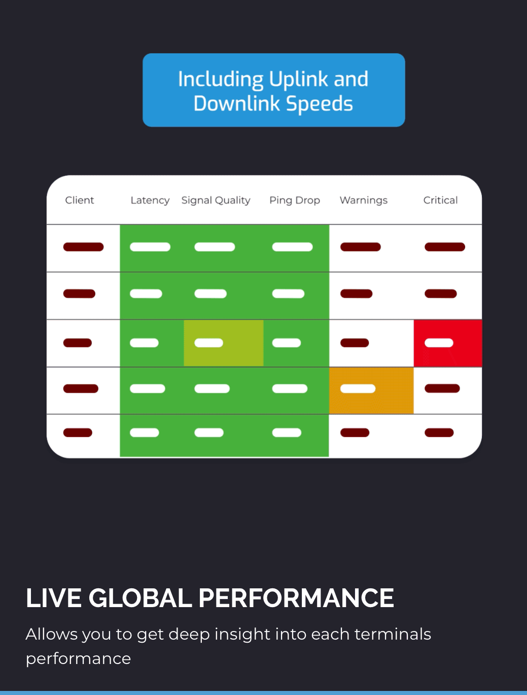 Get a quick snapshot of you entire Starlink estate in one single view.