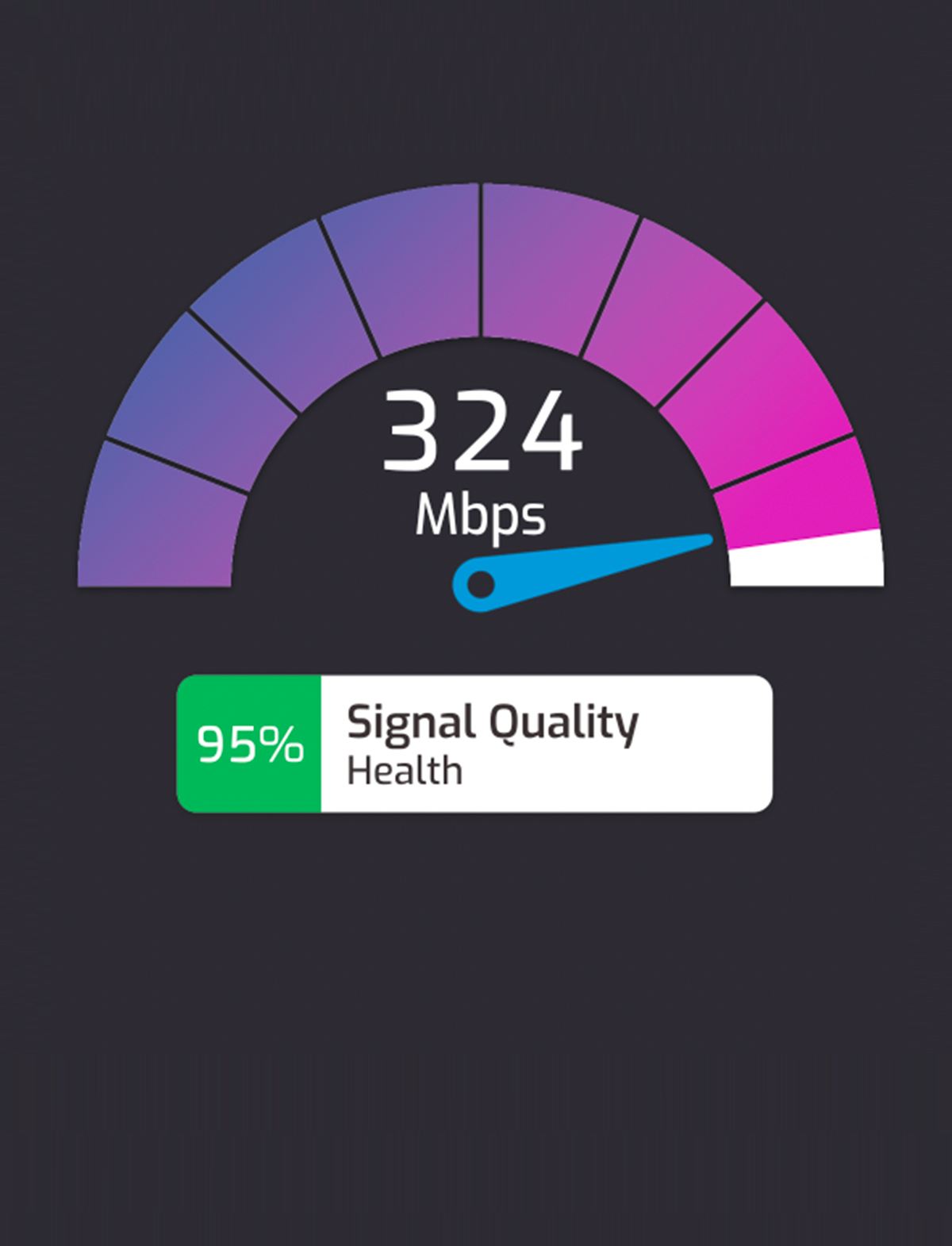 Live metrics for speed, latency, signal, uptime and obstructions.